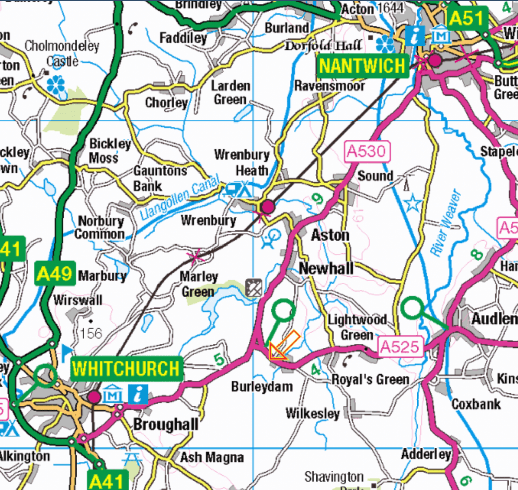 After 3 miles pass the Shropshire border sign and take a right signposted Audlem.